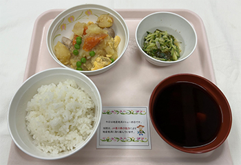 4月25日(木)、患者さまの昼食に「地産地消」メニューのお食事を提供しました。