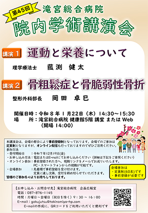 令和8年1月22日(木)14:30から開催の「院内学術講演会」のご案内です。