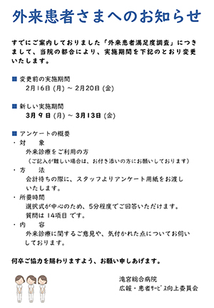 すでにご案内しておりました「外来患者満足度調査」につきまして、